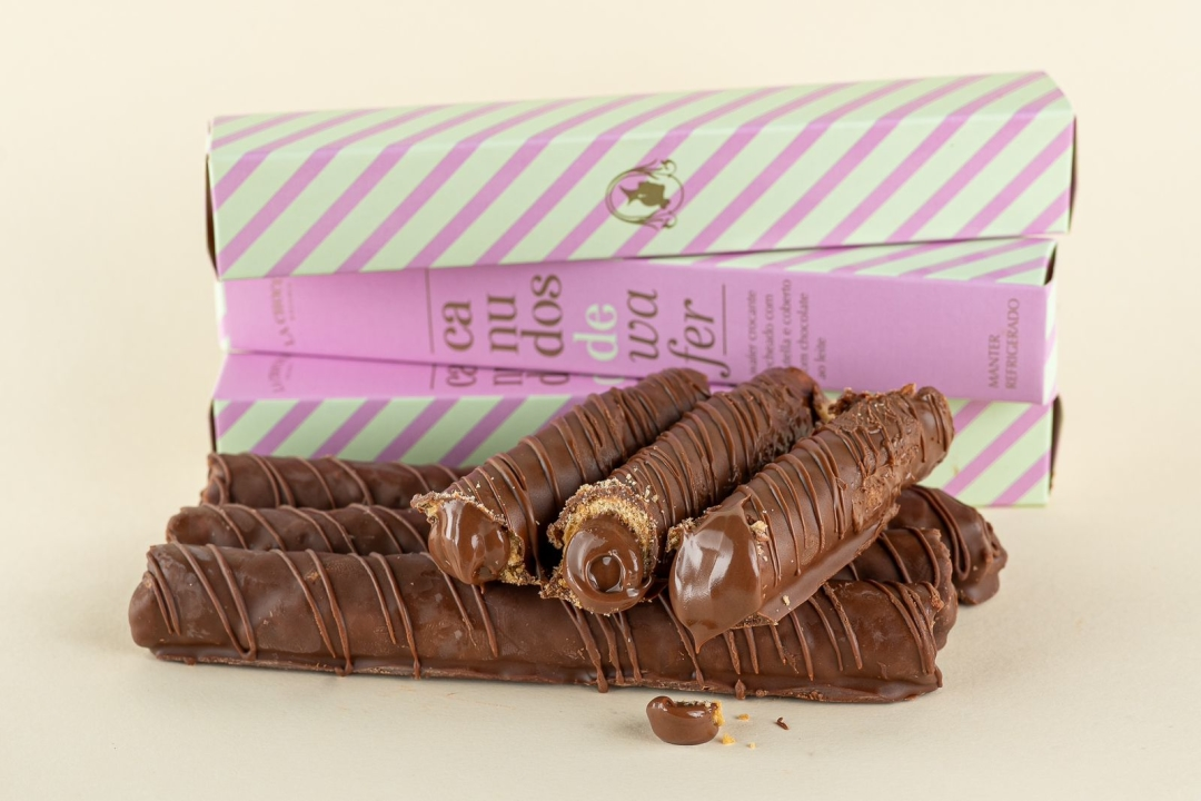 Canudo de wafer crocante recheado com Nutella e coberto com chocolate ao leite ( Embalagem Presenteavel)